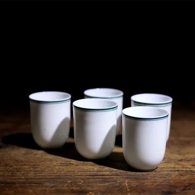 ③品茗杯:用于喝茶。杯子较矮,花样很多。什么竹节杯、铃铛杯、鸡缸杯、斗笠杯……环肥燕瘦,各种造型都有。