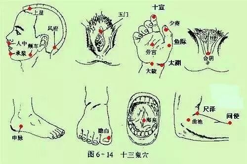 十三鬼穴出自唐代大医孙思邈(公元581—682年)着的《备急千金要方·卷十四·风癫第五》,其云:“扁鹊曰:百邪所病者,针有十三穴也,凡针之体,先从鬼宫起,次针鬼信,便至鬼垒,又至鬼心,未必须并针,止五六穴即可知矣。”