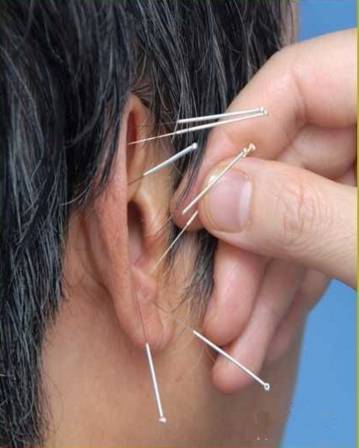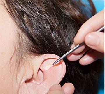 一般仅取常用穴,效不显时加选备用穴1-2穴。贴压物可用王不留行子,绿豆或冰片(预先制备成米粒大之颗粒),贴压于一侧穴上。然后每穴按压1分钟,使耳廓充血发热。令患者每日自行按压耳穴3~5次,睡前必须按压1次,时间为每穴约1~2分钟。隔日换贴1次,二侧穴位交替应用。10次为一疗程,疗程间隔4天。