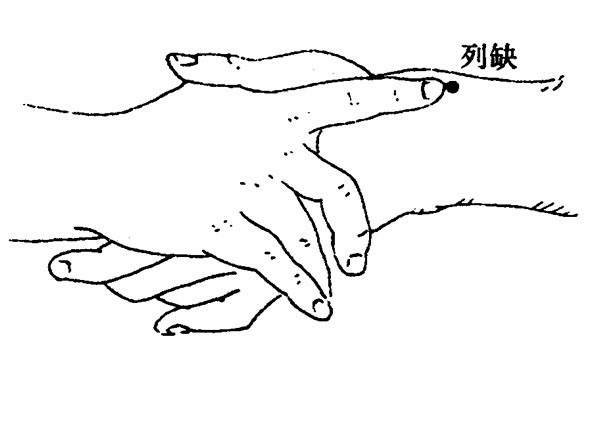 取穴方法:两手虎口相交叉,食指尖所指筋骨凹陷处。