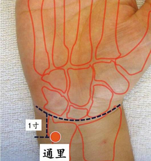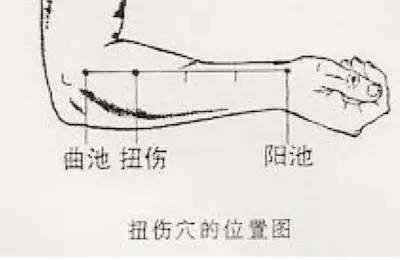 取穴方法:曲池(手阳明大肠经)与阳池(手少阳三焦经)联线的上1/4与下3/4交点处。
