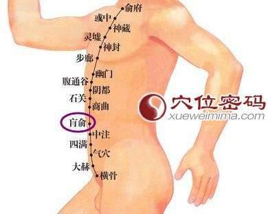 7、穴名:盲俞(冲脉、足少阴之会穴)