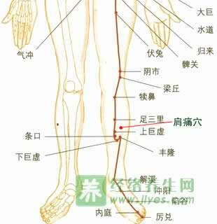 取穴方法:足三里下约三寸左右,胫骨边缘。