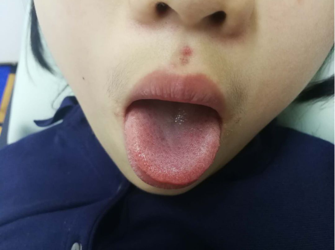 通过舌象分析来看,小女孩上焦有热,但是舌体总体偏淡,说明这种热是一种假象,身体应该是寒象。也就是说孩子的表象是上焦瘀堵,本质上呢是中焦脾胃系统瘀堵了。