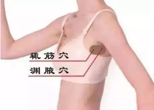 【7】如乳腺增生疼痛时,可在胸侧部腋下中线、足少阳胆经上,与乳头(躺下取平)在同一肋骨间隙处,有个渊腋穴和靠前一寸的辄筋穴。这两个穴位也堪称是调理乳腺增生的“绝穴”。
