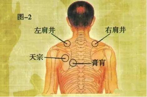 【3】肩胛骨冈下窝中央凹陷处小肠经的天宗穴也是治疗“乳痈”等乳腺增生的奇穴。