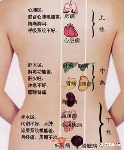 膀胱经在后背上有许多俞穴,俞就是通道的意思。有肺俞、胃俞、脾俞、肝俞、胆俞、心俞、厥阴俞、肾俞等等,这些俞穴各自通着各家的脏腑,这就跟不同的工厂都有自己的排污管道和途径是一个道理。因此咳嗽就治疗肺俞,胃痛就按摩胃俞、心血管有病就检查厥阴俞。这些俞穴效果如何呢?可以说越是经久难愈的疾病,这些俞穴就越显得有效。