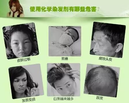 以上是有关化学染发的一些相关的报道,危害已经众人皆知了,但你可能会说,身边那么多人都染了照样活的好好的,但你要知道,每个人的体质是不同的,化学品对于人体的伤害是与日累加的,等到生病就来不及了。