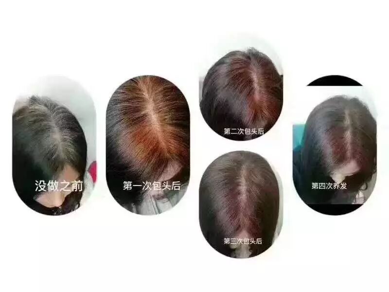 纯植物养发第一次,白发会呈金黄色,随着做的次数的增加,颜色叠加在一起,才会是栗棕或栗红色,底色不一样效果不一样,唯一一样的是头发会越变越好!
