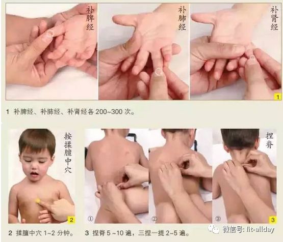当宝宝咳嗽快好了,痰也不多了,按摩手法的重点就要有所改变了。这时推荐大家使用治疗内伤久咳的手法作为巩固期间的主要治疗手法。1 补脾经、补肺经、补肾经各 200~300次。