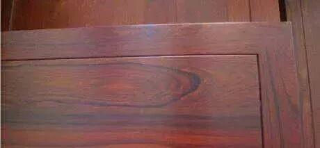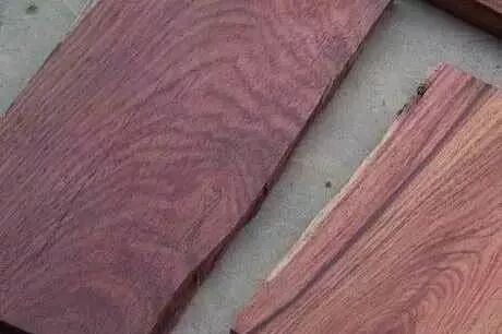 特征:心材多紫褐色、紫红色,少量黄色、黑色或紫色条纹、墨绿色条纹;原木砍伐后,端头如未及时封蜡,常温下会由两端向内颜色变深;木材在阳光下暴晒,颜色可变淡。