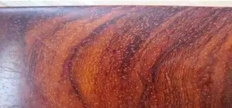 特征: 木材气味很淡,切面滑润,油质厚重。棕眼稀少,肌理紧密。边材窄,呈白色至淡黄色,心材呈深紫褐色,伴有黑色条纹,纹理均匀细密,大多为直纹。在白纸上一划,便可留下紫色痕迹。