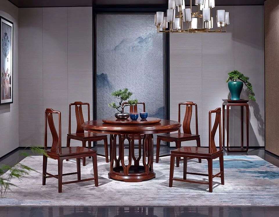 圆餐桌是团圆文化的象征,一家人围坐在一起不分彼此,就餐氛围更加融洽。富有曲线的靠背设计,适当的弧度给人以美好的姿态,美观之余还带来无穷惬意。试想,美味佳肴配上香醇红酒,觥筹交错之间,尽是生活的甜美与幸福。