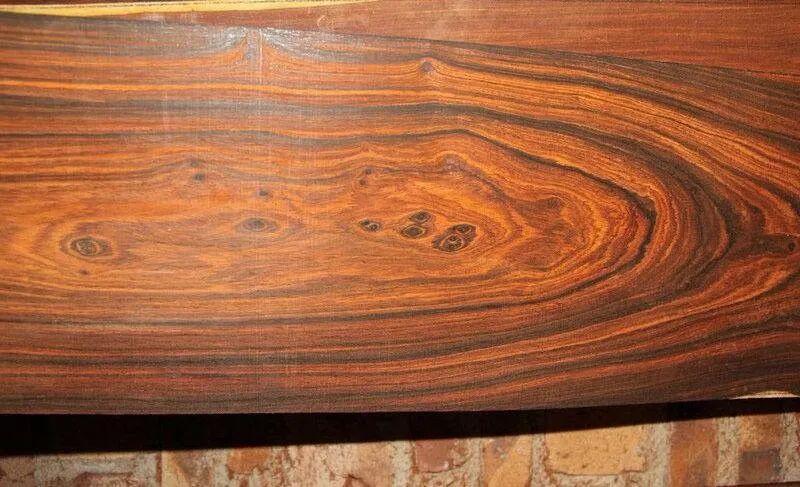 微凹黄檀,属于蝶形花科黄檀属,《红木》国家标准将其列为红酸枝木类。其心材与边材区别明显,边材浅黄白色,心材橘红色,久露大气中转为紫红褐色,切面经过空气氧化,15天之后跟交趾黄檀颜色一样,常带褐色条纹。
