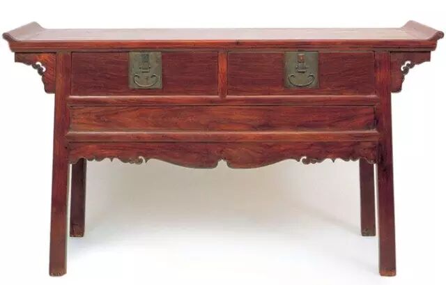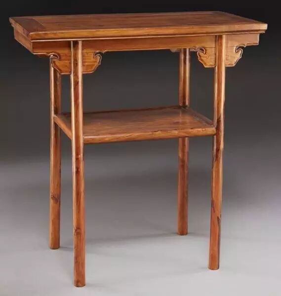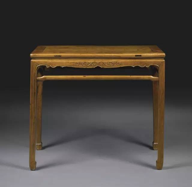 ▲一个非常罕见的黄花梨大凹腿台几,17世纪