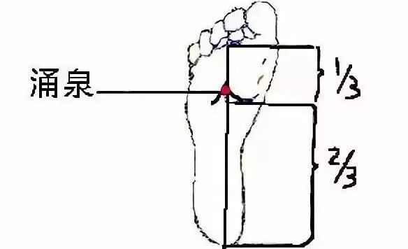 简便找涌泉穴的方法:将脚趾头向下弯,在脚心处会形成一个凹陷,陷下去的地方就是涌泉穴。