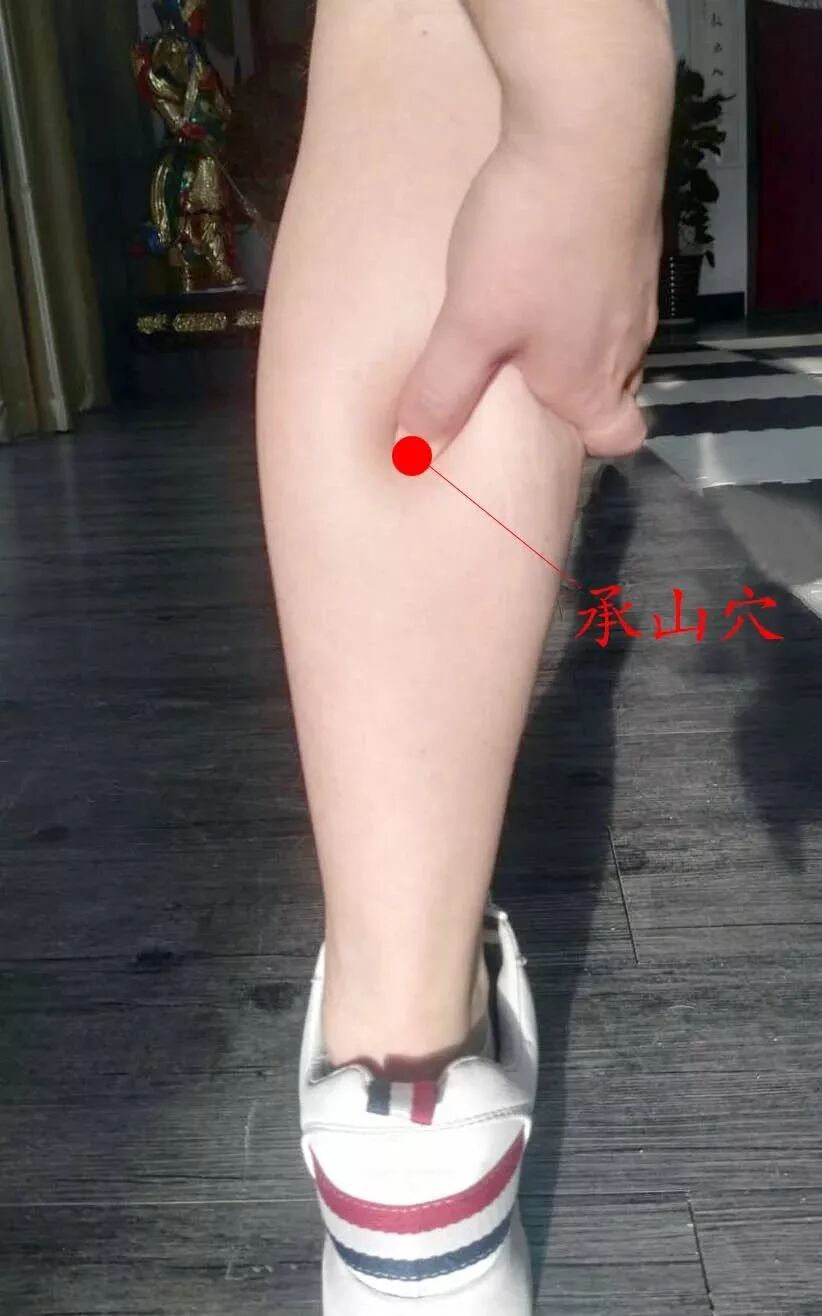 按摩方法:每天早上起床时,将两腿伸到床外,让承山穴正好搁在床沿上,两腿左右摆动,以按摩承山穴。