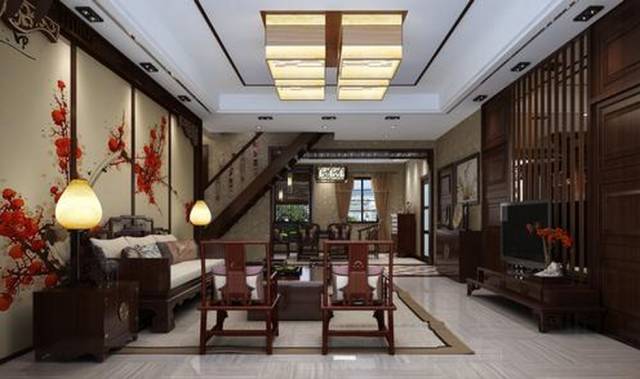 中国传统的室内设计融合了庄重与优雅双重气质。现在的中式风格中又融入了后现代手法,把传统文化、设计艺术、时尚动感和家居因素完美统一,形成了一种民族特色的标志符号。例如,厅里摆一套明清式的红木家具,墙上挂一幅中国山水画等,传统的书房里自然少不了书柜、书案以及文房四宝。
