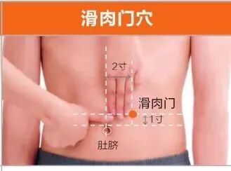精确取穴:在上腹部,脐中上1寸,距前正中线2寸。