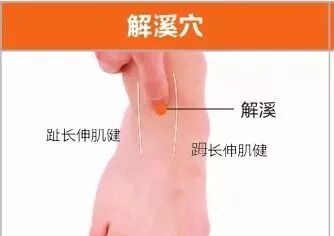 精确取穴:在足背与小腿交界处的横纹中央凹陷中,长伸肌腱与趾长伸肌腱之间。