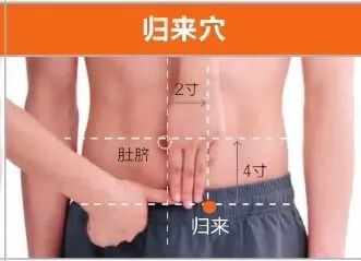 精确取穴:在腹股沟稍上方,脐中下5寸,距前正中线2寸。