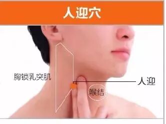 精确取穴:在颈部,喉结旁,胸锁乳突肌的前缘,颈总动脉搏动处。