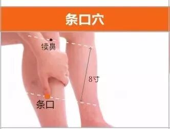 精确取穴:在小腿前外侧,外踝尖上8寸,条口外,距胫骨前缘2横指(中指)。