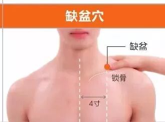 精确取穴:在锁骨上窝中央,距前正中线4寸。