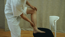 探查脾经,我们用小指的掌指关节。脾经很长,我们主要找小腿这一段。