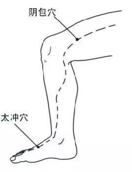 大家别忘了,上面阴包穴疼得很厉害,为什么太冲穴没有反应呢?是因为气堵在上面了。所以记住我们疏通肝经的秩序是先按揉、敲揉阴包穴,待阴包穴痛感下降后,再点揉双侧的太冲穴。直到太冲穴也不疼了,说明肝经的下肢部分基本畅通了。