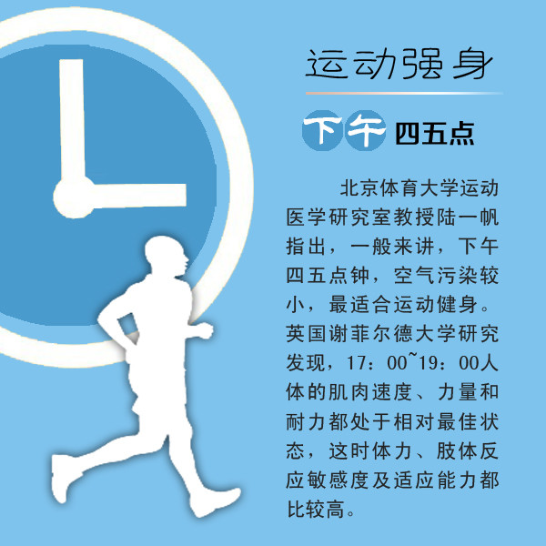 【导读】人体有生物钟,健康也有时间表。在合适的时间养生,才是对身体最好的回报。《生命时报》结合国外多项研究,采访相关专家,从饮食、运动、起居等多方面,总结出有益健康的最佳时间,让保健功效事半功倍。