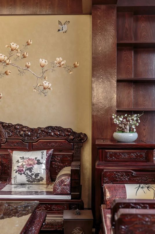 中式风花鸟壁画也与整室风格完美融合。