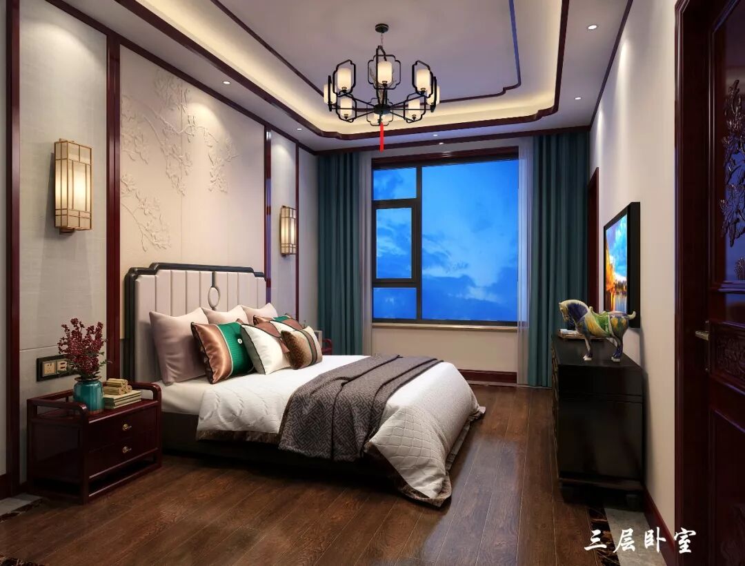 三层卧室时尚典雅,简单一张红木大床、两只床头柜,让人着迷的复古色。无论是天街小雨簌簌而落,还是细碎的阳光轻洒进来,都是一幅美好的景象。