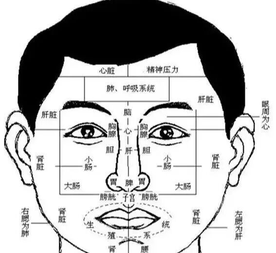 人体的内脏,例如心、胃、肾等都与脸部的不同部位有特定“联系”。