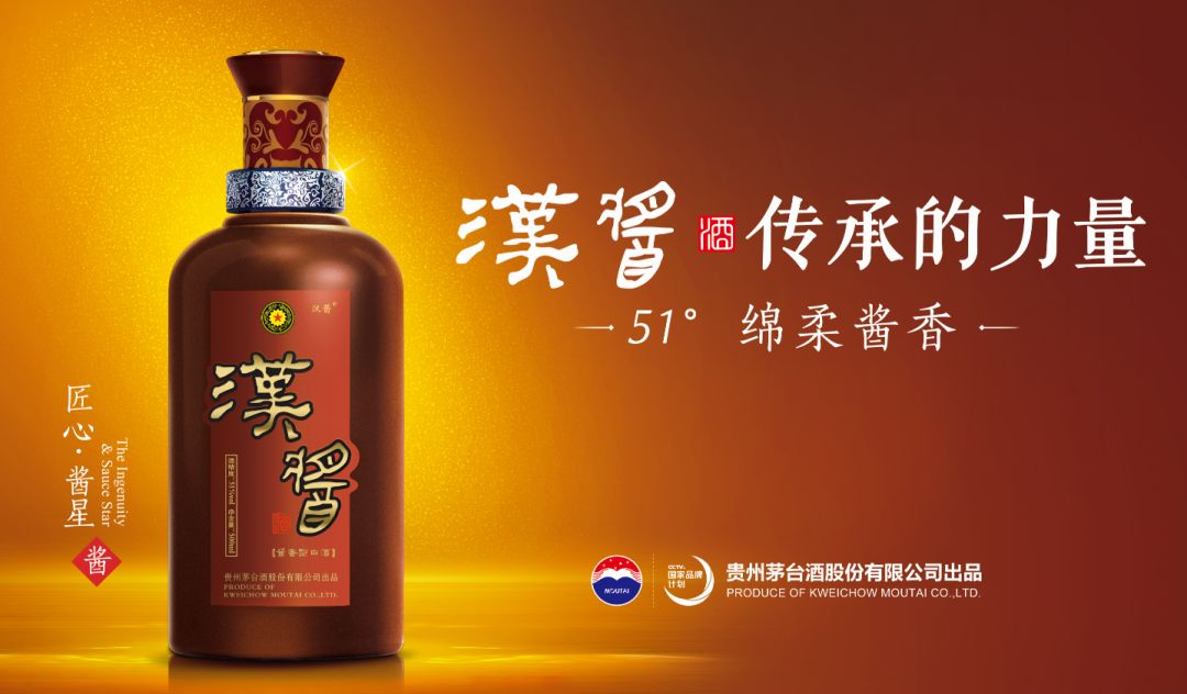 汉酱酒最开始是由习酒公司在2005年06月推出的产品,2011年5月贵州茅台酒股份有限公司接手汉酱,茅台版本汉酱正式面世,首创51度酱酒,既保障酱香又赋予更绵柔的口感。与传统茅系酒风格不同,走的是“绵柔”路数。
