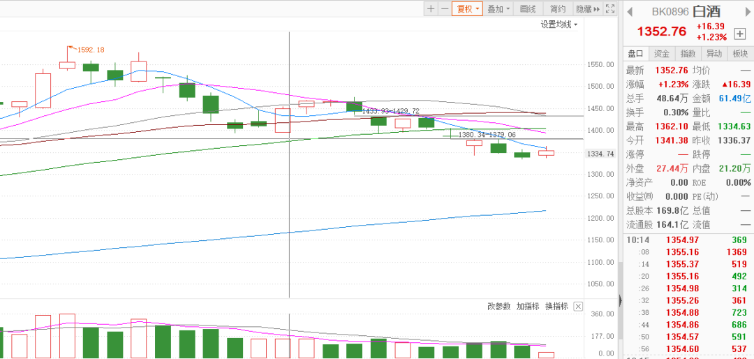 自8月31日板块指数创出历史新高以后,白酒板块指数持续下挫,截至9月28日)收盘,指数跌幅高达12.52%;指数从最高点1592.18点以来,已下跌16%。因此,假期将至,白酒市场热度提升,白酒板块也迎来了一波反弹行情。