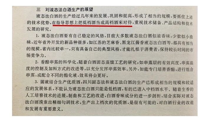 自上世纪六十年代来,酒界一直在进行着各种技术革新,立志于解决白酒的香气问题、生产出物美价廉、受市场认可的新工艺白酒。到了后期,更有“用液态法新工艺白酒生产高档酒”的呼声(下图选自1995年第4期《酿酒》杂志)