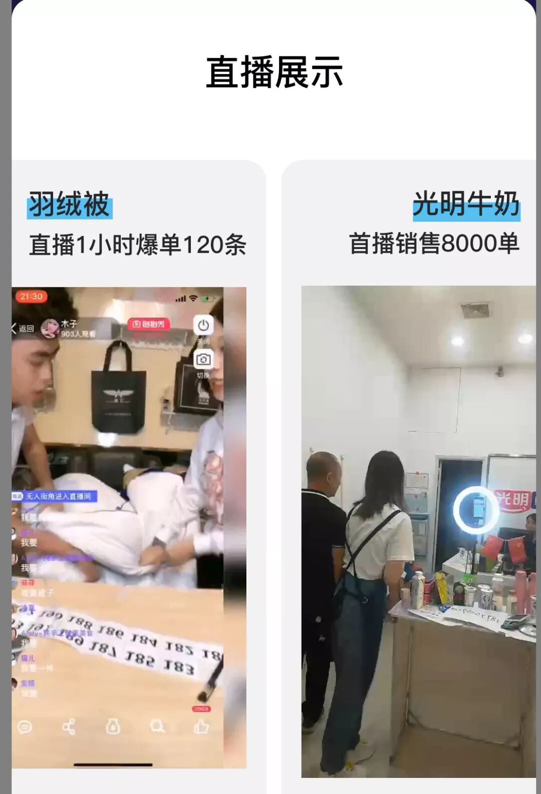 1.先发优势,18年12月发布App,19年4月份发布小程序直播,6月份完成全屏小程序直播测试,7月份开始商业化推广。