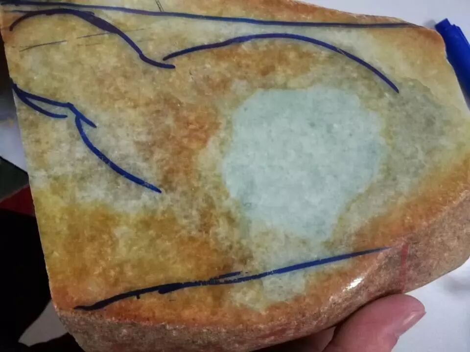 这块翡翠原石是要种没种,没水头没水头,很明显就是一块废料,做大牌挂件的效果会非常不理想,就算雕工在好没种没水头的料子也难以挽回损失。