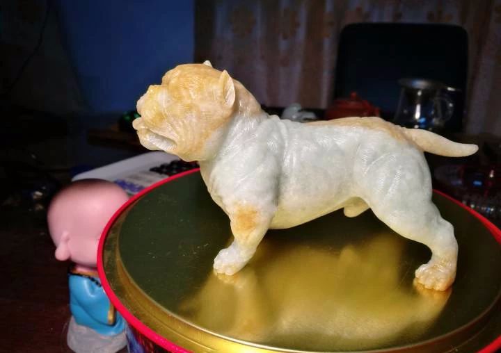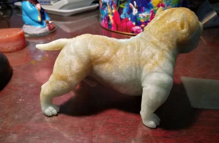 经过几个月的反反复复设计,一只萌宠出来了,养过宠物狗的朋友想必都能看出这是啥吧!这是一只恶霸犬,还没有雕刻完成,在修饰一下细节就可以抛光了。