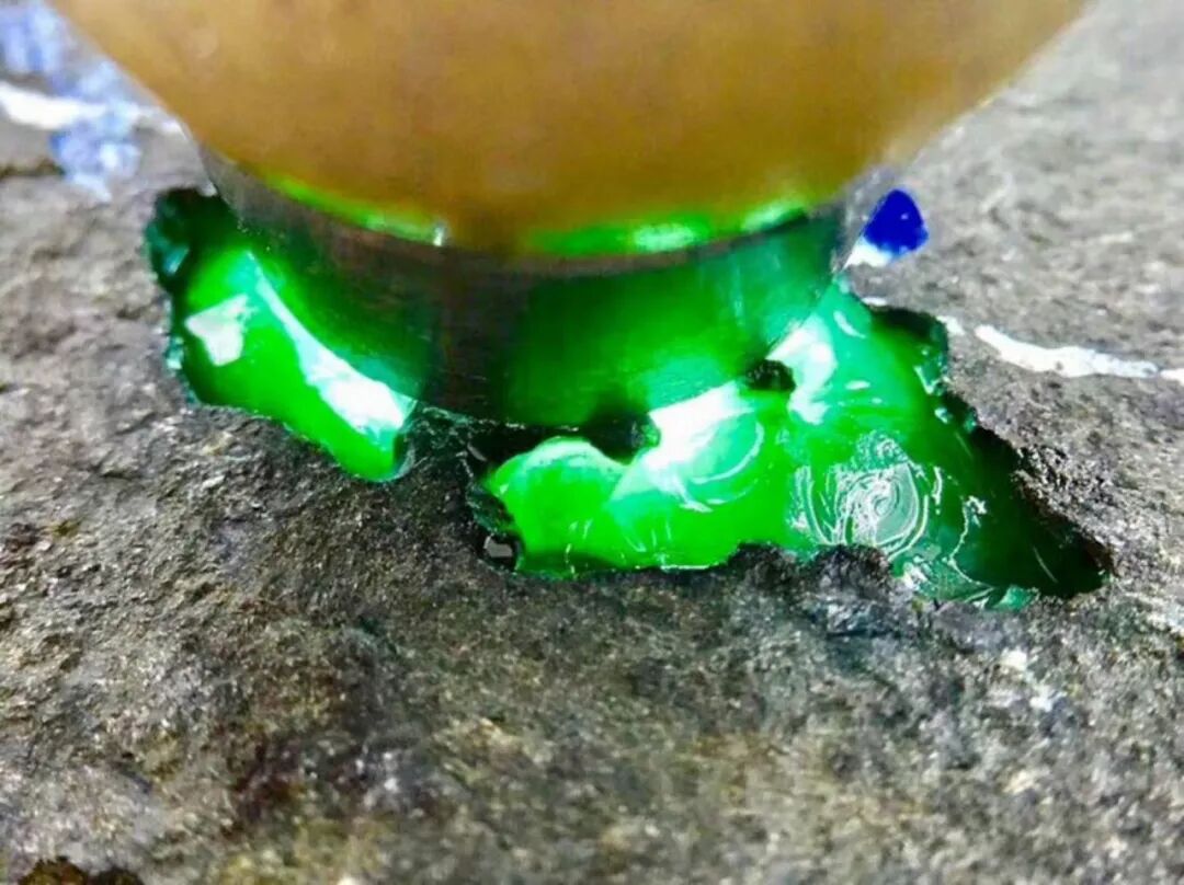 打灯来看,绿的像个苹果味的糖果一样的感觉,品相真的很完美,目前我们也不用高兴的太早了,原石没切开之前永远都是有赌性了,你不可能是个透视眼把,能看见里面是个什么样子,下面就是赌色有没有渗透到内部全部铺满是最好不过的了,还有赌棉赌裂切开后会不会变种,这些都是我们要担心的。