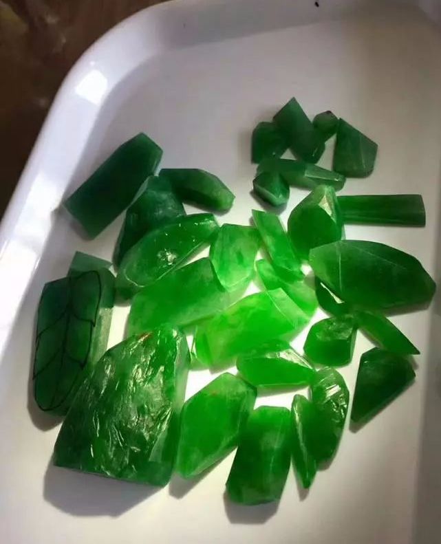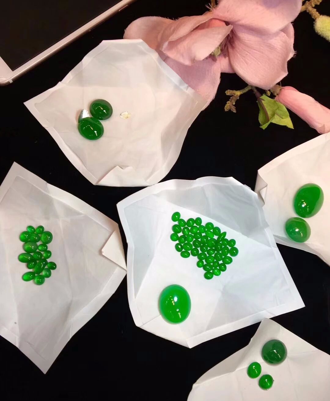 货主买下的翡翠原石,取下数个绿色蛋面,这是要发啊!