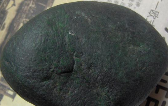 微晶玻璃擦假皮仿高档翡翠赌石是将绿色微晶玻璃料打磨成砾石状,并将表层进行人工粗糙打磨,再用粉质涂料涂抹,伪装成经过人工擦皮过的翡翠高档赌石料。