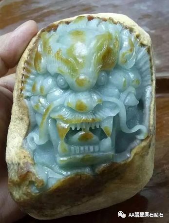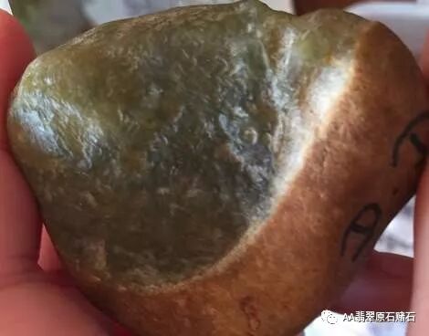 半山半水的皮壳介于山石和水石之间。其表皮虽然有一层砂,但却与山石的砂皮有别。它的砂层薄而洁净,但也不像水石那样光滑。其水头要比山料好些。常见场口:木那、莫西沙,大马坎等。大马坎场口就常出“半山半水石”,大马坎翡翠原石一般都有雾,其中白雾底好,种透;黄雾底细;红雾底灰,多呈油青色。以黑雾最差,十解九丢。但也有个别时候——红雾、黄雾也会出玻璃种。