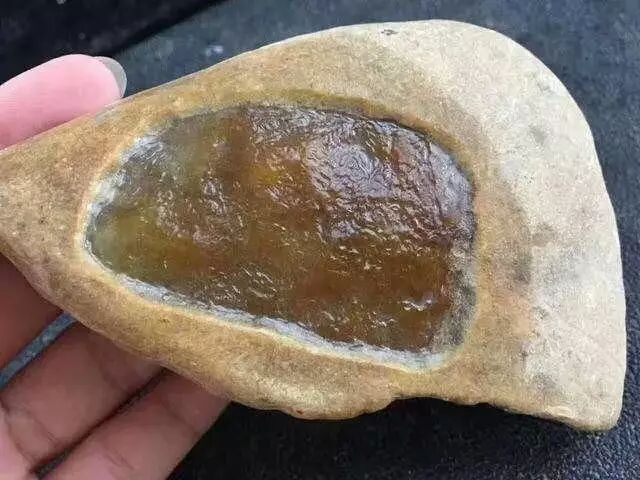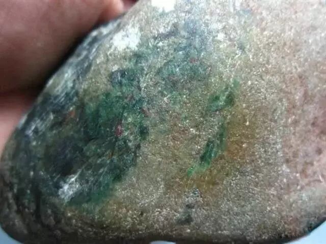 翡翠原石在风化作用下剥解成碎块,这些翡翠碎块却没有在河流搬运或地质运动下带入山沟或河流,而是停留在半山上或没有水的地方,就形成了翡翠半山半水料。