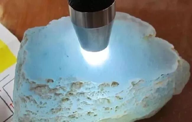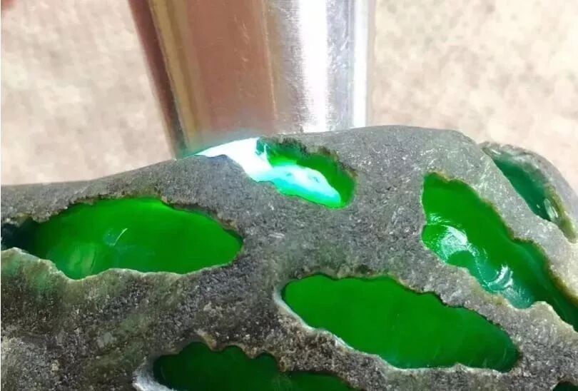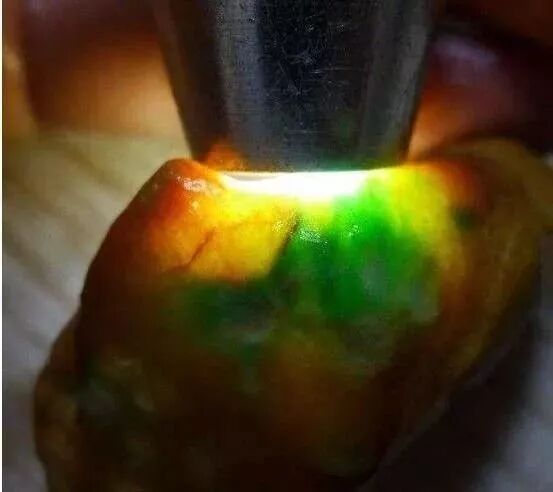 当然,不是随随便便一个手电筒就可以看翡翠原石的,市场上有专门用来看珠宝的强光手电筒。强光手电筒是看翡翠原石时最常用的工具,因为它可以更清楚的观察翡翠的情况。