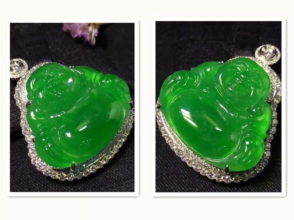 耐心等待了一个多月,通过打磨抛光后的成品已闪亮登场!总共加工成了两件,一件佛公吊坠,一件平安牌子,我们可以看到整个种好水足色美,整个饱满通透。