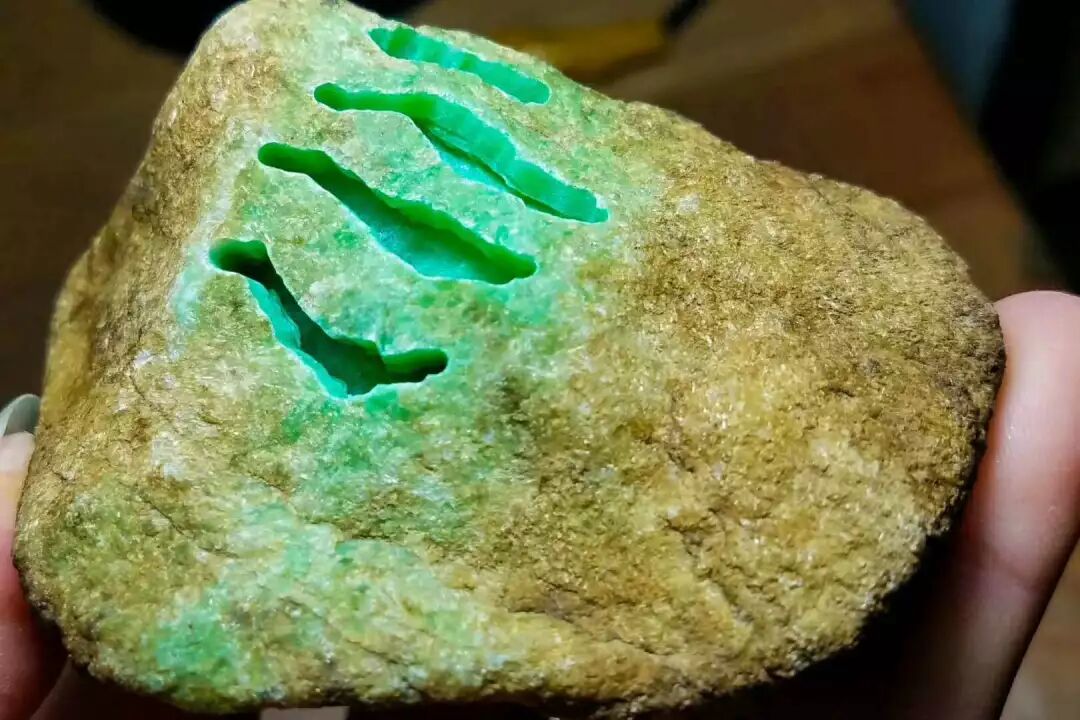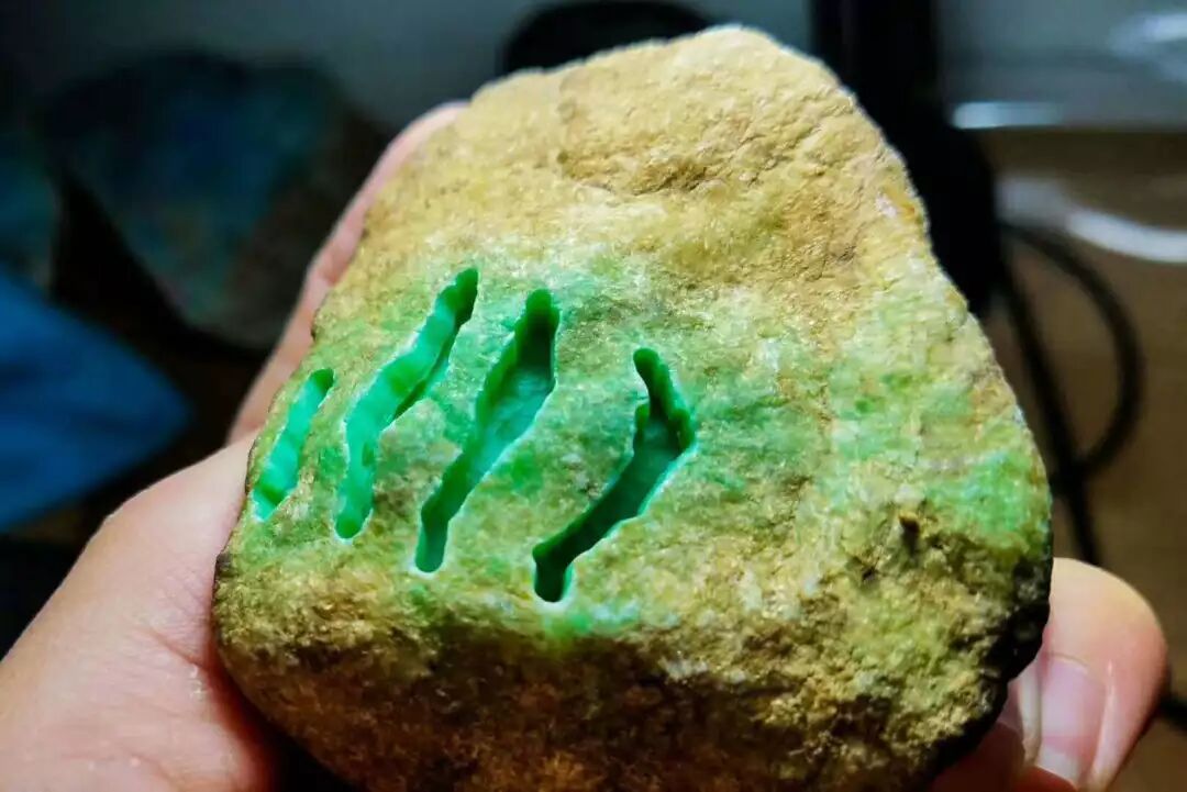 今天带给大家的是一位游客买的一块木那场口的料子,已经开好窗,从窗口的位置可以清楚的看到浓浓的绿色,色够阳,够辣。