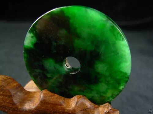 花青种翡翠底色为绿色、无色,绿色有浅绿、深绿,绿色形状有丝、脉、团块状及不规则状,虽然是绿色,但分布极不规则,这也是花青种翡翠最大的特点。