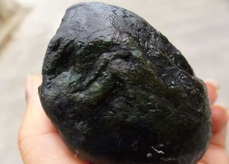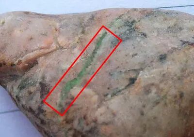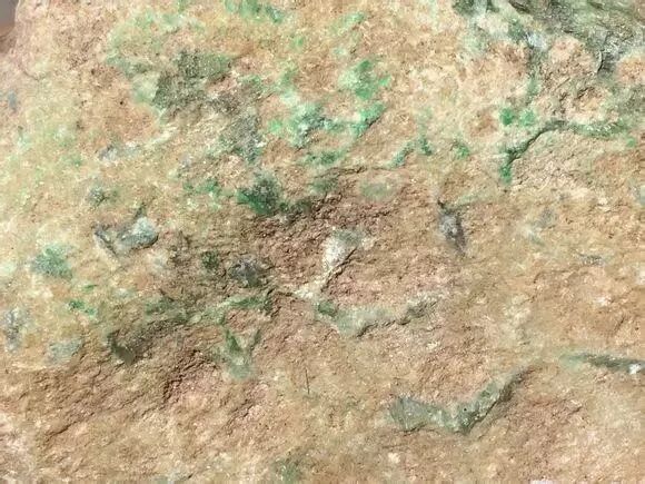 按一般情况来说,细粒致密的表皮会比粗粒松散的抗风化能力强,有绿的部分比无绿的部分抗风化能力强。所以翡翠原石内部绿色的地方或者种很老的地方凸出来就形成了蟒带。